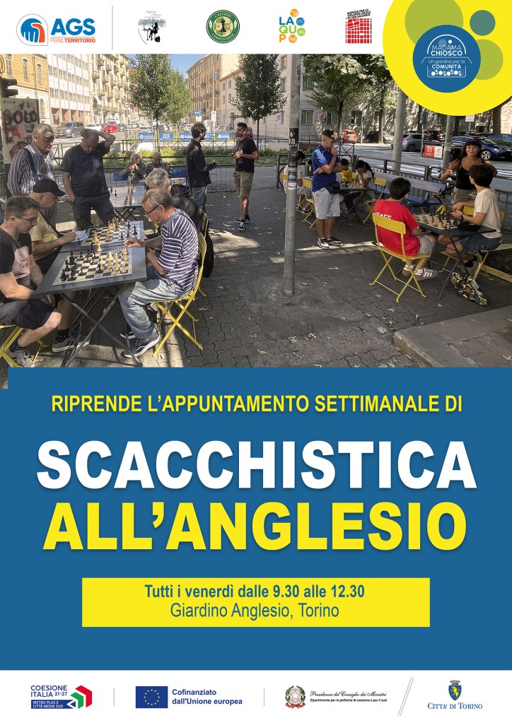14 giugno 2024: all’interno del progetto MADAMA-GIOTTO: SPAZIO ATTIVO, si è svolto un nuovo ciclo di appuntamenti al Giardino Giorgio Anglesio per giocare a scacchi sotto gli alberi.