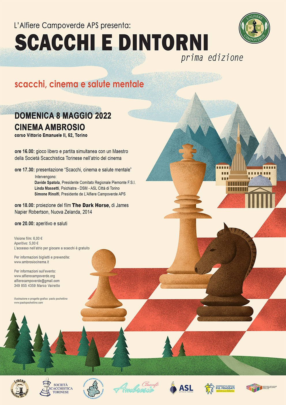8 maggio 2022: Prima edizione dell’evento SCACCHI E DINTORNI, organizzato da L’Alfiere Campoverde, che si svolgerà presso il Cinema Ambrosio di Torino, in C.so Vittorio Emanuele II, 52.