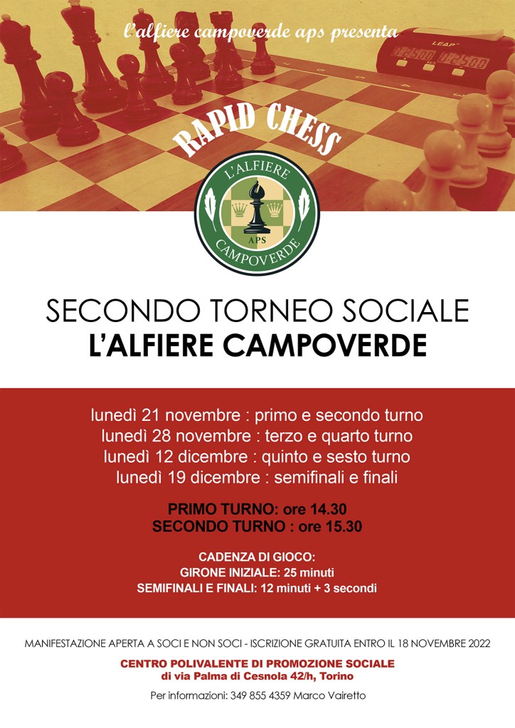21 novembre 2022: inizia il Secondo Torneo Sociale L’ALFIERE CAMPOVERDE.