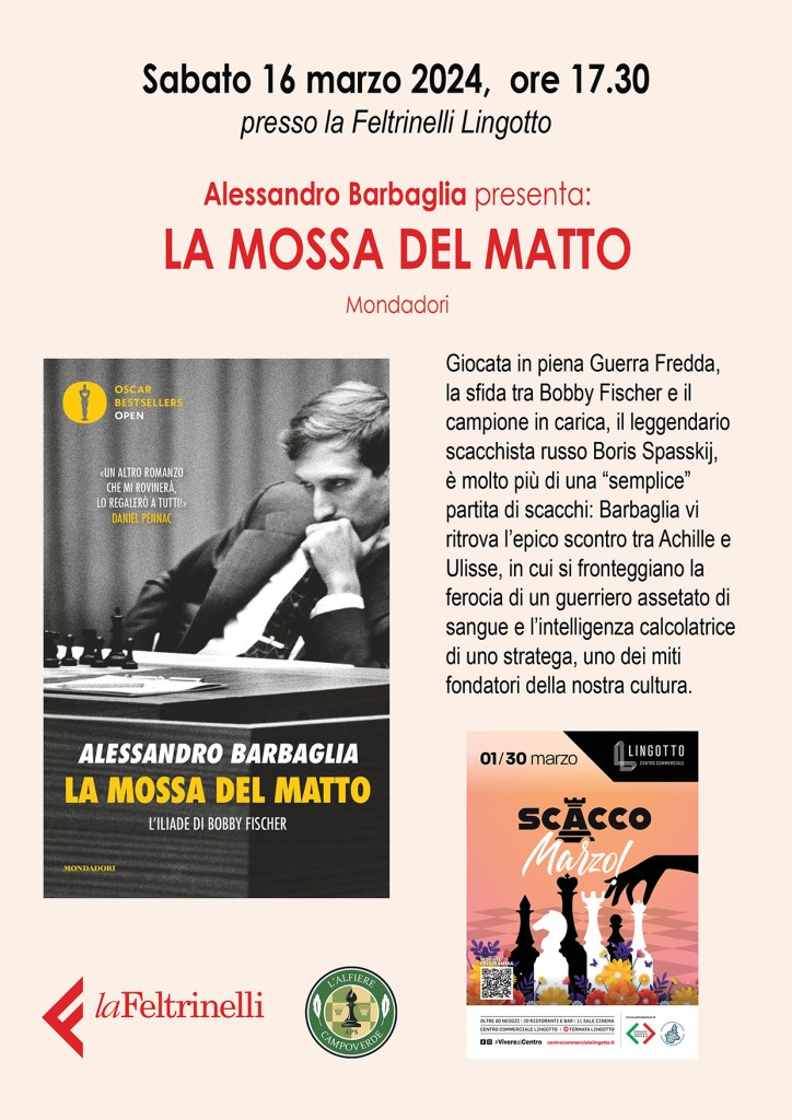 16 marzo 2024: AGGIORNAMENTO: la presentazione del libro La mossa del matto di Alessandro Barbaglia, prevista all’interno dell’evento Scacco Marzo, è stata ANNULLATA per altri impegni dell’autore. È confermato invece in mattinata l’appuntamento presso il Rosso Caffè per Scacchi e Brioches.