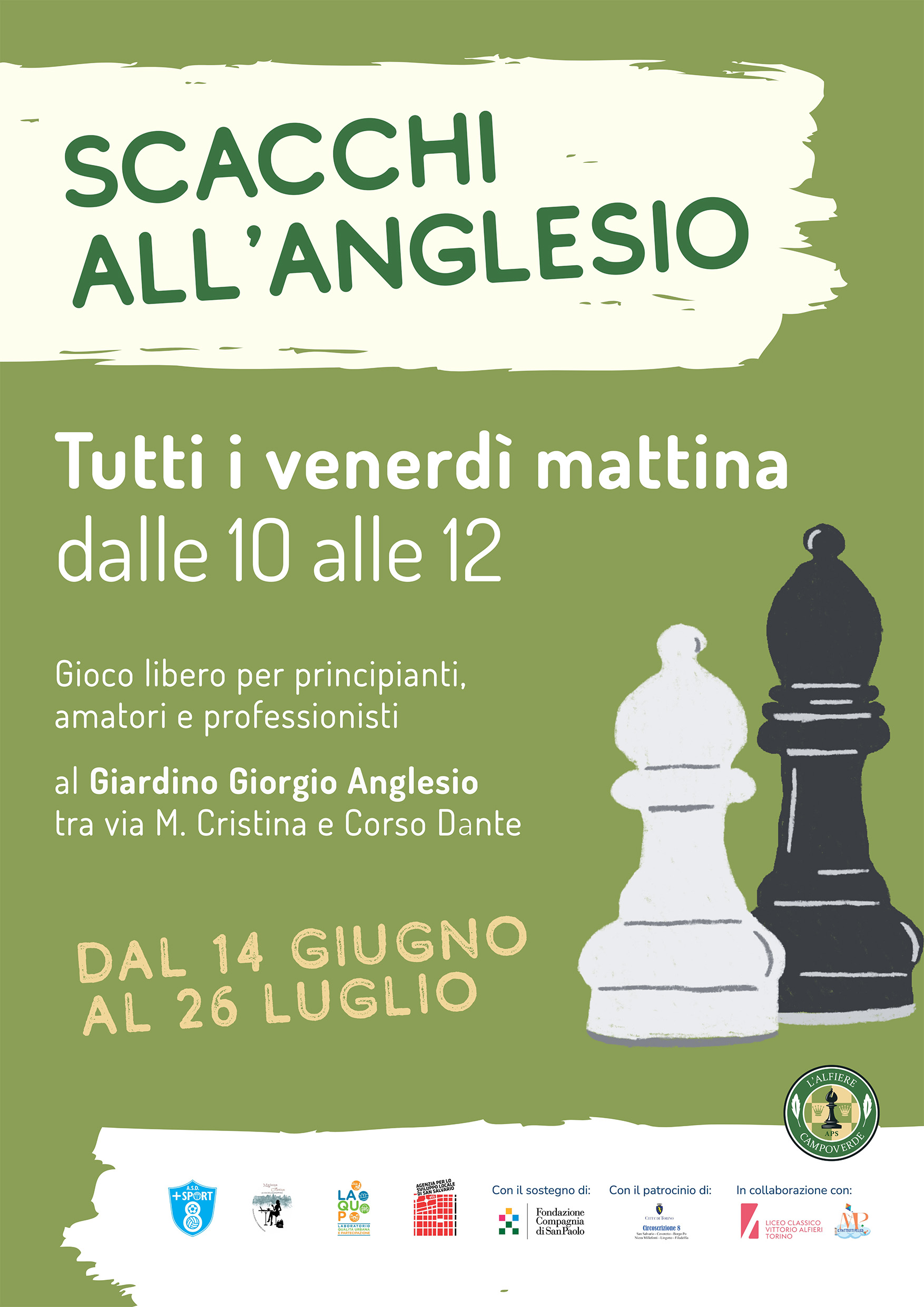 19 settembre 2024: sono aperte le iscrizioni per il TERZO TORNEO SOCIALE de L’Alfiere Campoverde. Da lunedì 14 ottobre ci si confronterà per 4 lunedì consecutivi, dalle 14.30 alle 17, presso il CRT di via Saluzzo 98/a.